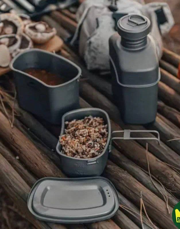 ست قمقمه و ظروف شخصی نیچرهایک مدل NH21CJ004 از جنس تیتانیوم سندبلاست است و شامل یک کتری، دو گلدان و درب قابلمه کوچک میباشد. این ست سبک و مقاوم با کیف بوم استتاری برای حمل آسان طراحی شده است